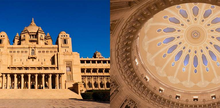Guests planning a stay at this heavenly hotel can choose from 22 Palace Rooms and 42 Suites. Rooms here showcase impressive views of the palace gardens. Each room has been adorned with utmost perfection with all kind of lavish amenities. The hotel has all kinds of well facilities too like fitness center, yoga facility, large indoor and outdoor pools. Dining at Umaid Bhawan Palace is a royal affair. You can fall for gluttony at ‘Risala’, serving continental and fusion Indian cuisines. 'Trophy Bar' of the hotel lets you enjoy a variety of finger food, cocktails, premium spirits and Cuban cigars.
