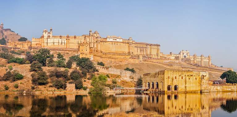 Amber Fort was built by Raja Man Singh of the Kachhwaha clan of Rajputs. A mere 11 km from Jaipur, Amber used to be the capital of the Jaipur estate, until it was shifted to Jaipur city. The Amber Fort is a sprawling complex on top of a hill, with numerous palaces, gardens, temples and other structures inside. It is a fine example of Rajput architecture. The Amber Fort overlooks the Maotha Lake and is reflected beautifully in its calm waters. An elephant ride is the most enjoyable way of reaching the hill top to access the Fort.