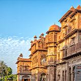 read more...Lalgarh Palace is the pride of Bikaner. This palace was built by Maharaja Ganga Singh (1881-1942), Sir Swinton Jacob being the chief architect. It is a beautifully designed building, made of red sandstone on a lavish scale and has a perfect blend of Rajput, Mughal and the European style architecture. The palace is adorned with beautiful old paintings & hunting trophies. It has some exquisite latticework and filigree work that is done by craftsmen from Bikaner itself. The Palace has wild peacocks spreading their feathers at almost every step among the flowering rows of bougainvillea.
